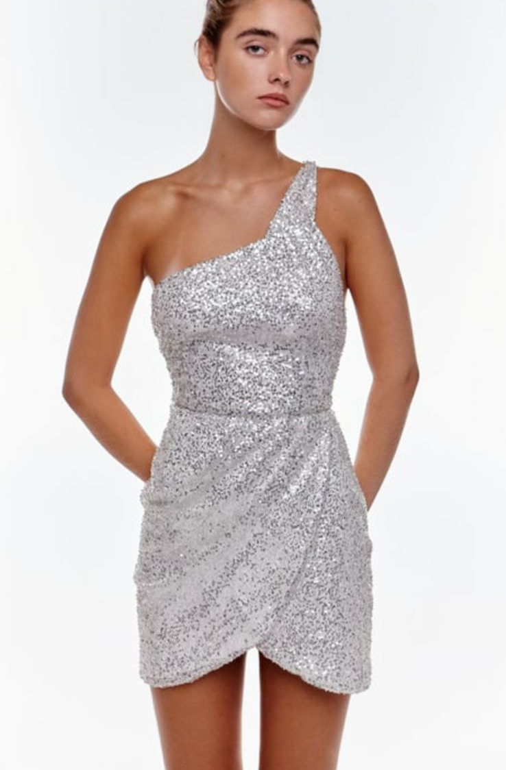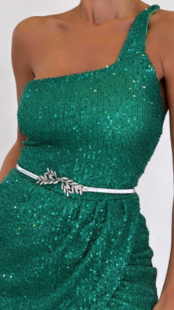 Vestido glitter 1hombro escote espalda