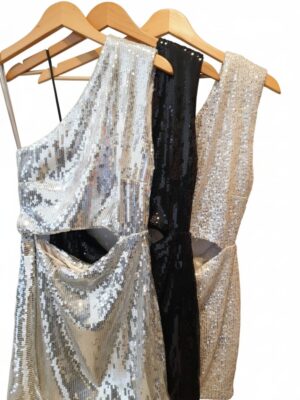Vestido lentejuela un hombro con hombreras