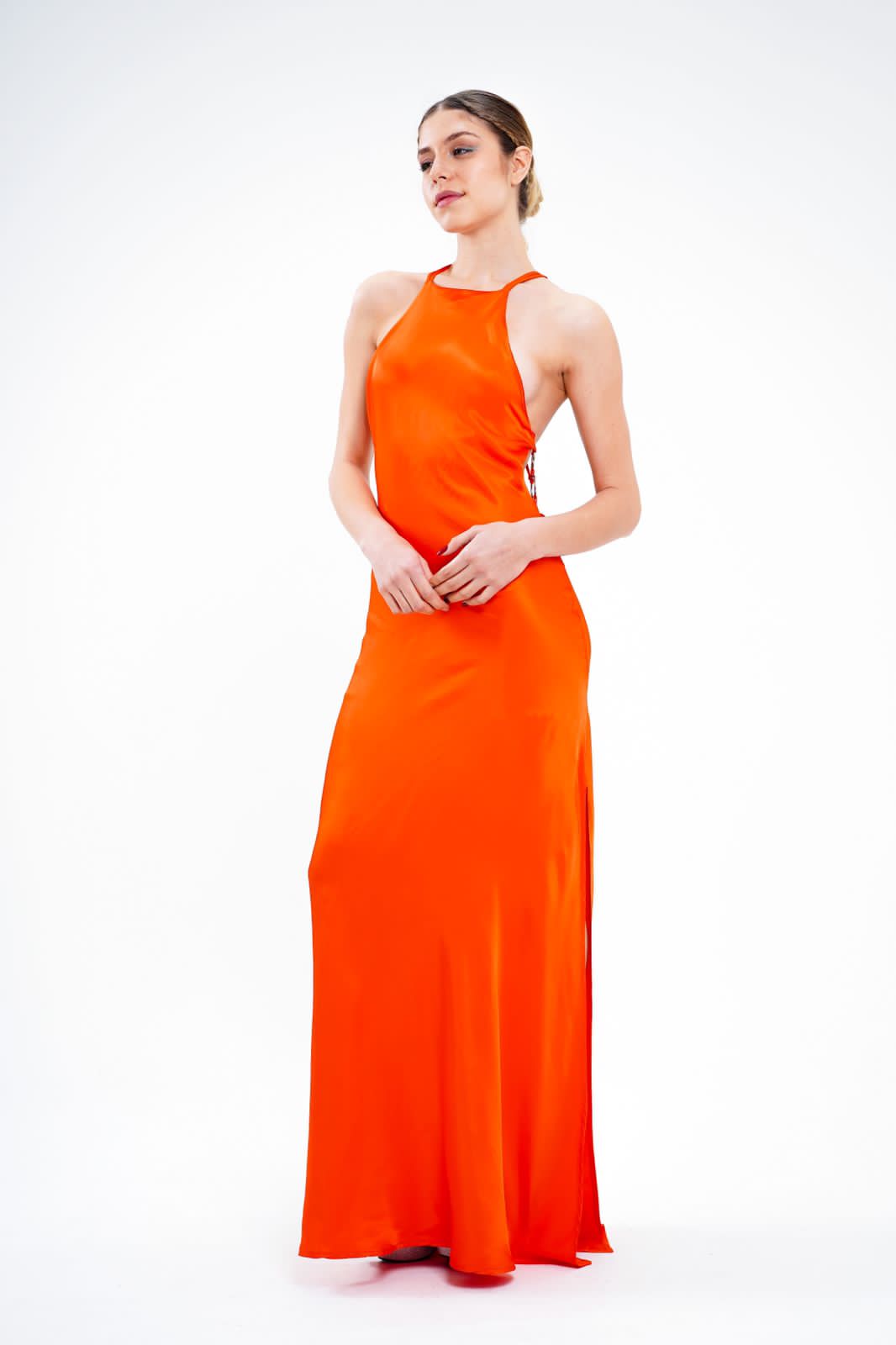 Vestido largo con argollas atrás