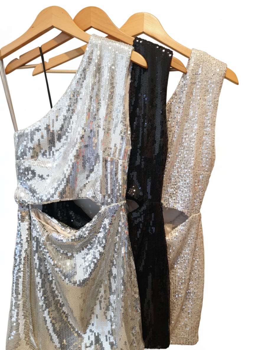 Vestido lentejuela un hombro con hombreras